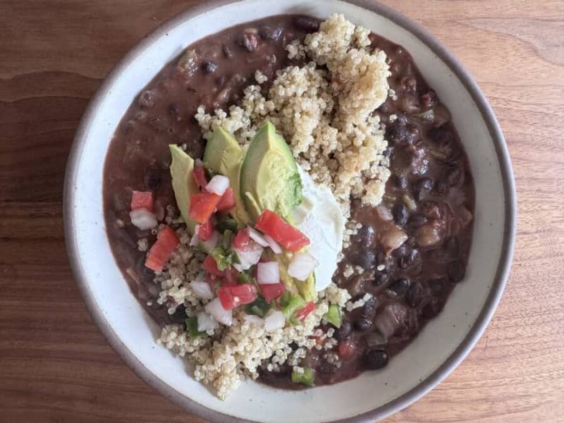 Weekday lunch ruts, solved! The Lazy Girl’s Southwest Quinoa Bowl combines make-ahead protein strategies with vibrant flavors for a satisfying meal that’s as nutritious as it is simple. This bowl delivers sustained energy without demanding excessive prep time, featuring chicken, protein-rich quinoa, black beans, and fresh vegetables topped with a creamy Greek yogurt dressing. The clever ingredient storage tips ensure you can assemble this protein powerhouse in minutes when hunger strikes. See recipe here.