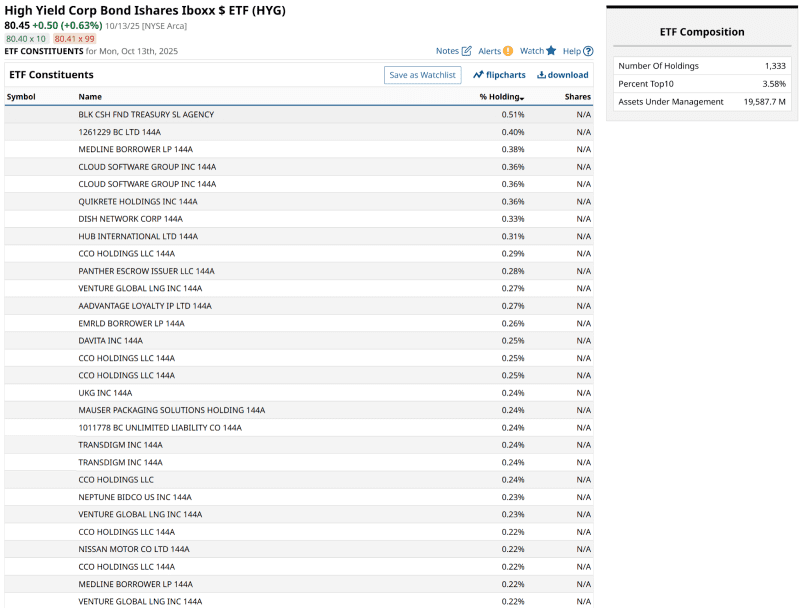 These are many of the companies that issue a lot of high yield bonds. The type that ends up in HYG.