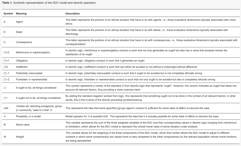 Symbolic representation of the ADC model and deontic operators. (CREDIT: MDPI Algorithms)