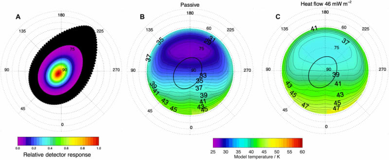 “Eking out the subtle surface temperature variations caused by Enceladus’ conductive heat flow from its daily and seasonal temperature changes was a challenge, and was only made possible by Cassini’s extended missions,” Dr. Miles adds.