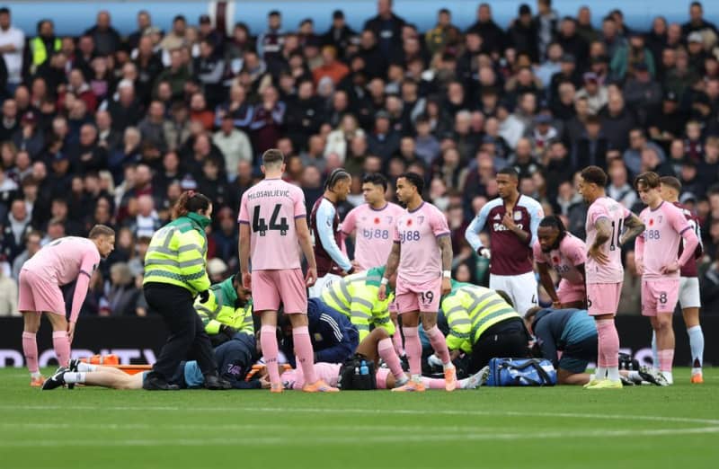 The match was halted for several minutes as medical staff attended the scene.