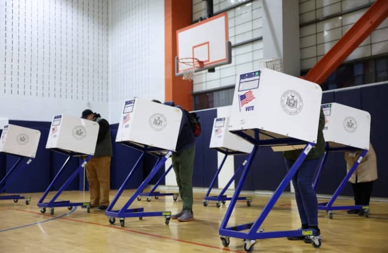 People vote in the New York City Mayoral election at a polling site at the Frank Sinatra School of the Arts High School in Astoria, Queens borough of New York City, US, November 4, 2025. (credit: Kylie Cooper/Reuters)