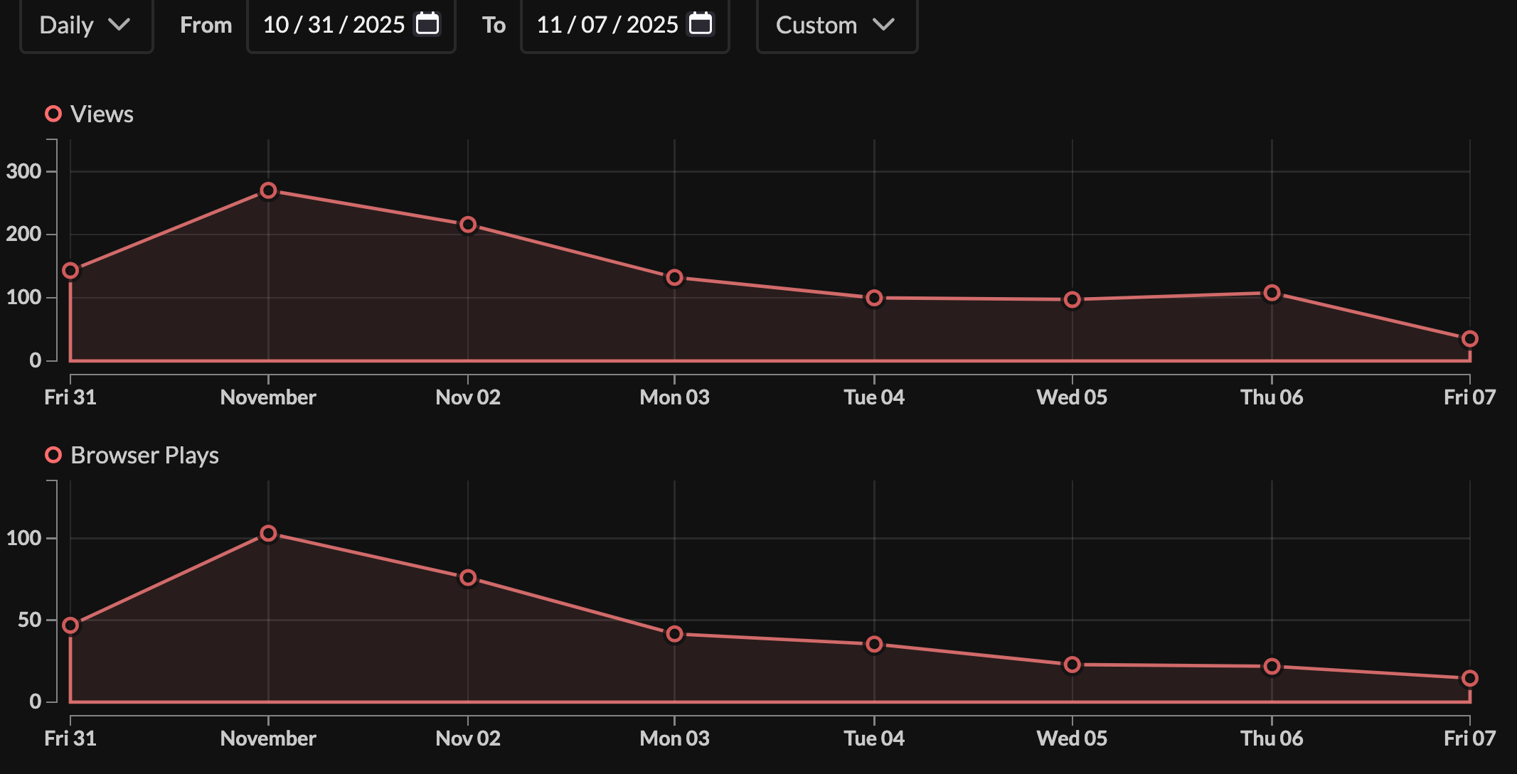 The above graph was taken during the middle of the day on November 7, exactly a week from release, but you can see that the game received the most page visits and browser plays on November 1 and began to trend downwards since. Not unexpected, to say the least.