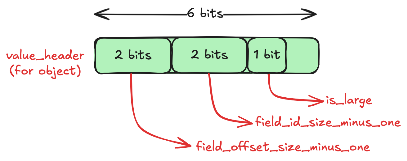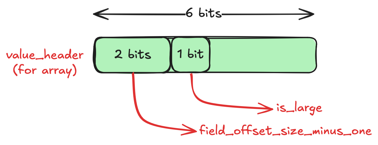 and so on. This is needed because each value in a variant object can be of any type, which means each value can be of any size! There’s one extra field_offset