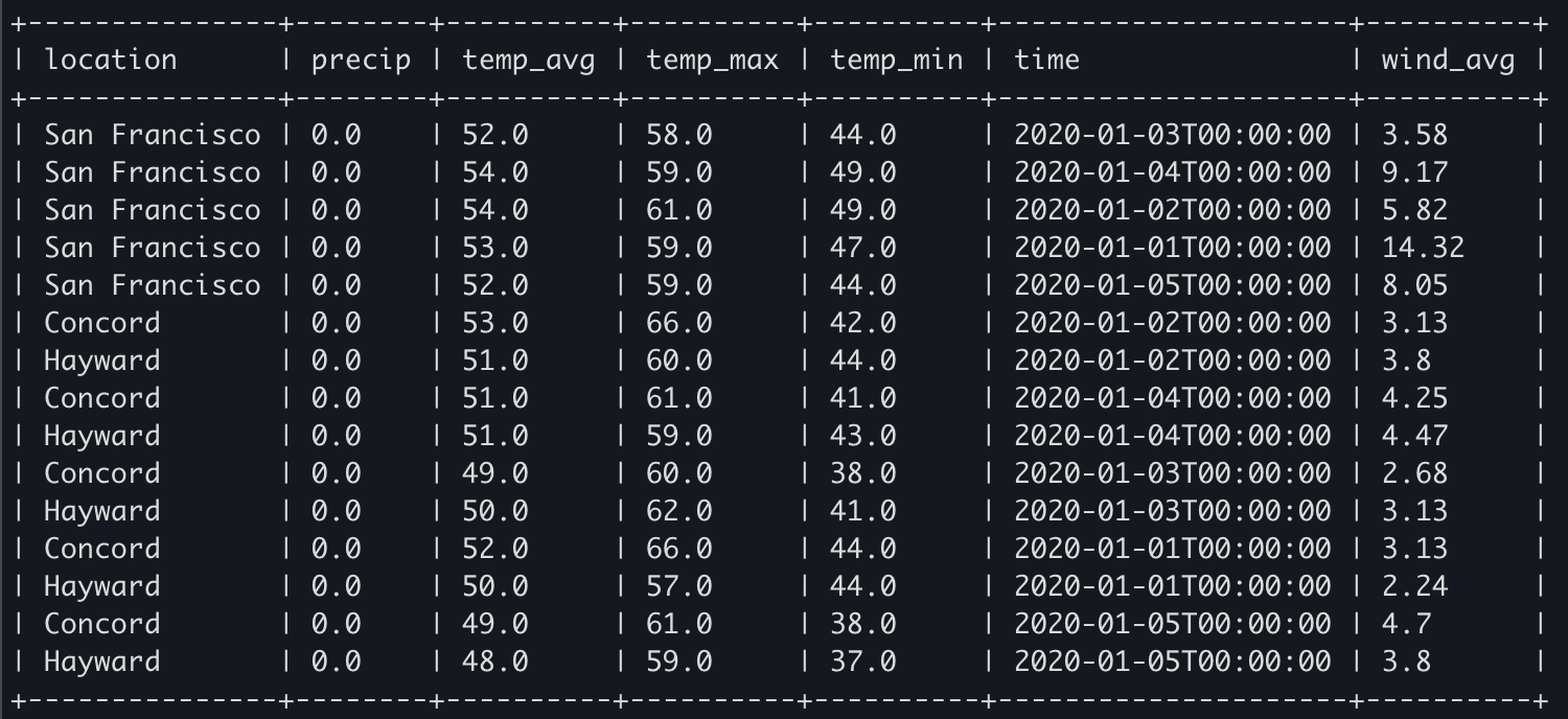 If you want to load your own data, you can use the line protocol to format and load any time-series dataset. Once it’s loaded, you can run a query command to read the data: