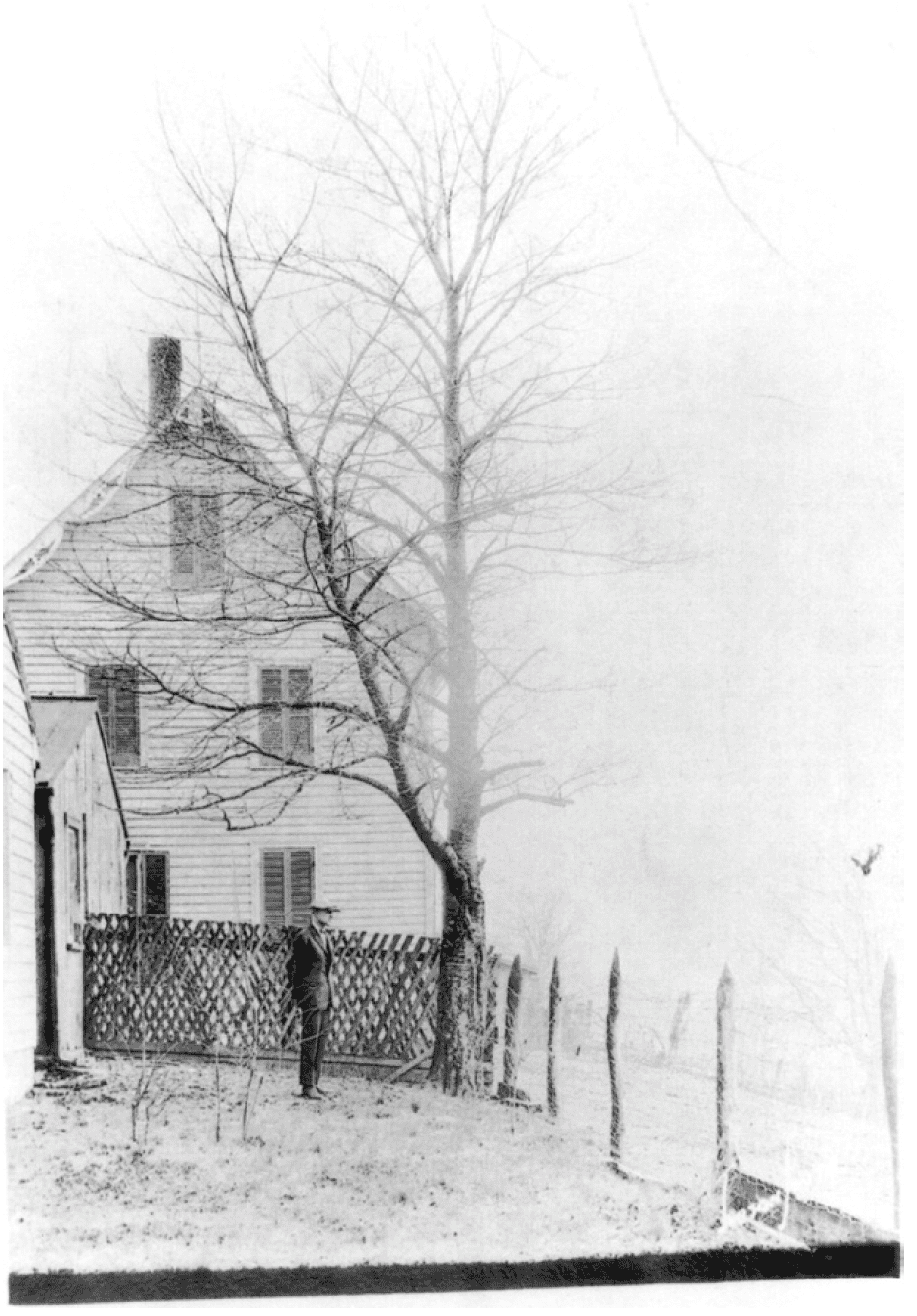 A man in a driving cap stands before what was said to be Washington’s cherry tree at Ferry Farm in about 1917. (Courtesy of the George Washington Foundation, Fredericksburg, Virginia)