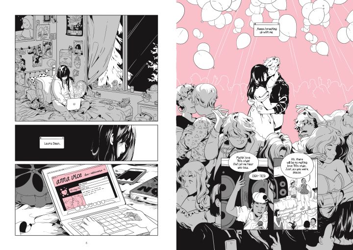 pages from Laura Dean Keeps Breaking Up With Me by Mariko Tamaki, illustrated Rosemary Valero-O’Connell (First Second, 2019)