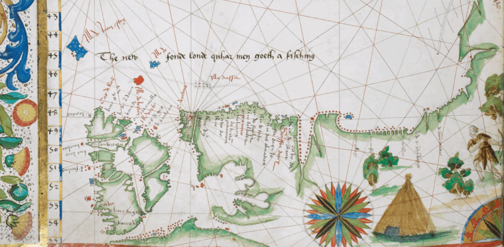 “The new fonde londe quhar [where] men goeth a fisching.” Detail, *The Boke of Idrography. *Jean Rotz, 1542. Courtesy of the British Library.
